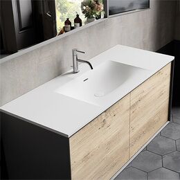 Plan vasque 120 cm en résine minérale blanc brillant CINÉA - O'DESIGN