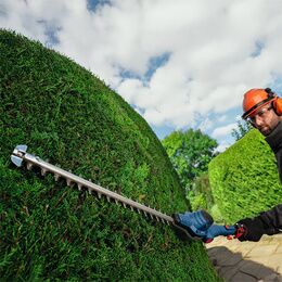 De plus, la tête de coupe inclinée permet d'effectuer des tailles ergonomiques sous différents angles avec une finition soignée des sommets et des côtés des haies.